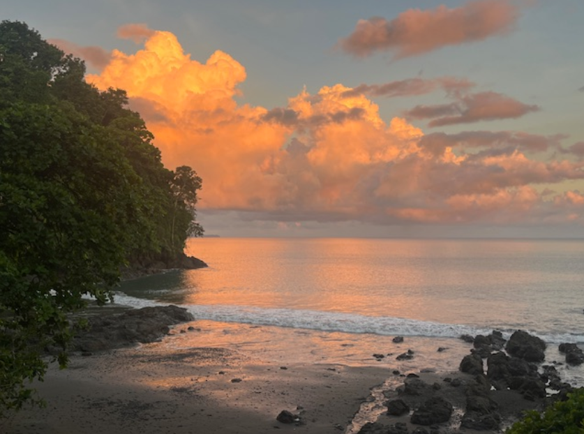 We are just back from ten days on the Osa Peninsula in Costa Rica, a place I have been to before with students from Elon University. We stay at Campanario, which is a biological reserve that is off the grid except for the solar panel running the fridge. It has always been magical, but this time, in lieu of all the noise in the world, it was a respite from the clamor, drama, and endless onslaught of news. It was indeed an eddy out of the turbulent times in which we live.