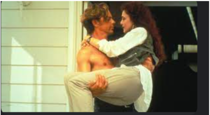 Then Sara wanders around the stables only to stumble across the grumpy older brother—Jason (Bruce Greenwood)—who happens to be shirtless and hosing down a stallion. He gallantly carries her across the mud puddle created by the horse-washing, so she gets pressed up against his sweaty chest before she even knows his name. And she never mentions her career again.